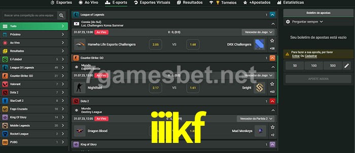 O iiikf oferece uma grande seleção de opções de apostas em e-sports com probabilidades competitivas